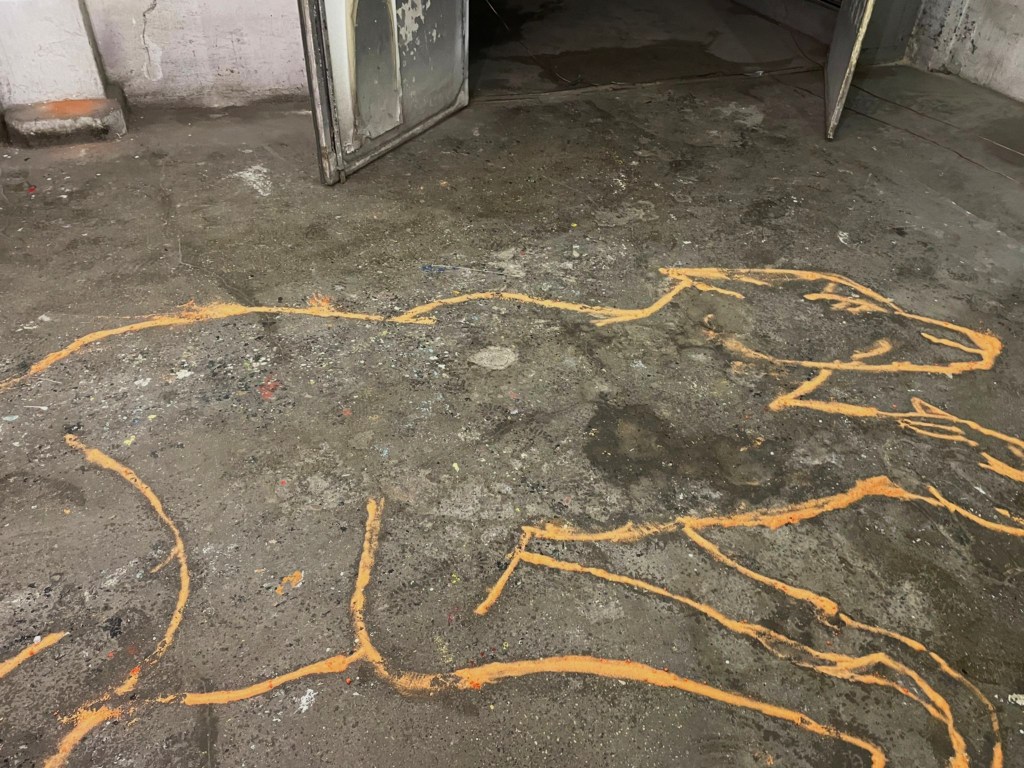 Die Bilder, welche in die Karosserieteile gekratzt und mit Salz auf den Boden gezeichnet sind, symbolisieren diese Gedanken, sowie ihre Referenzen: